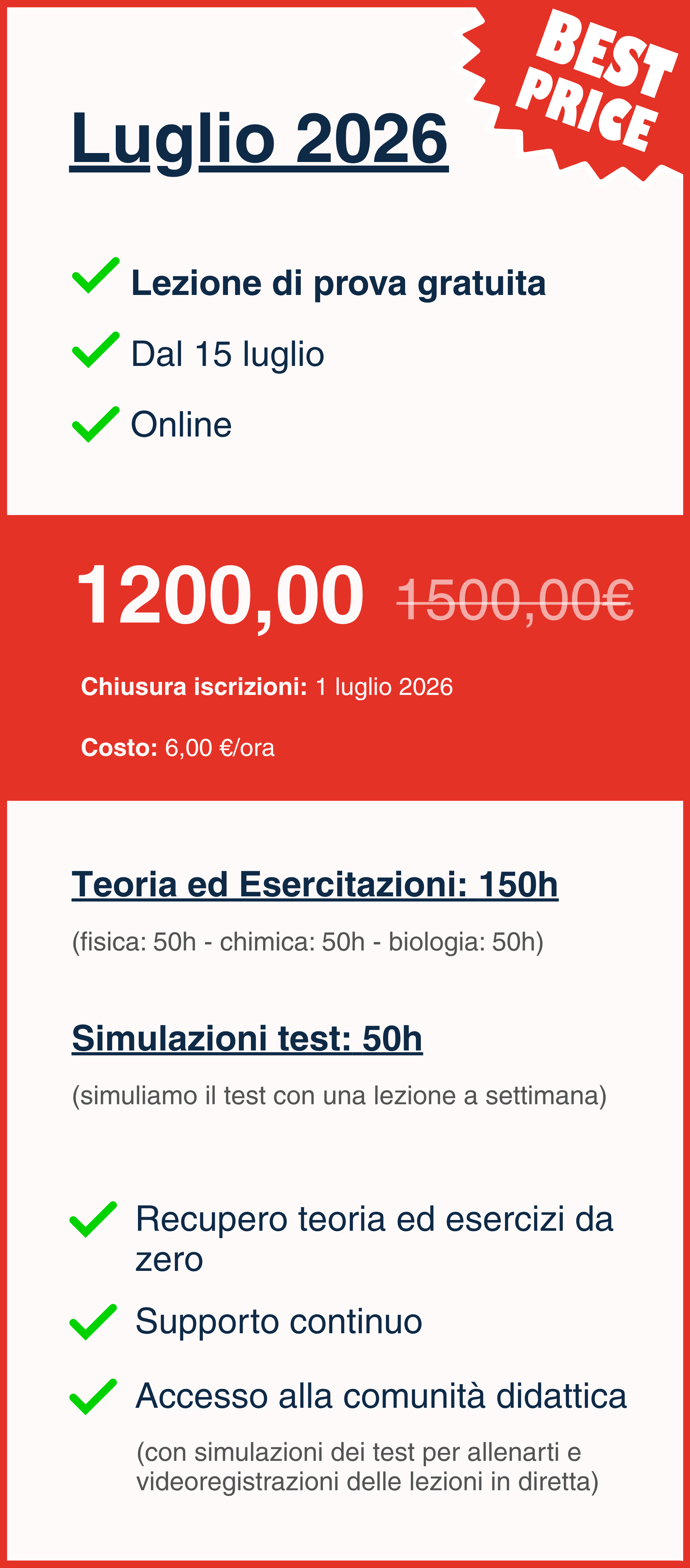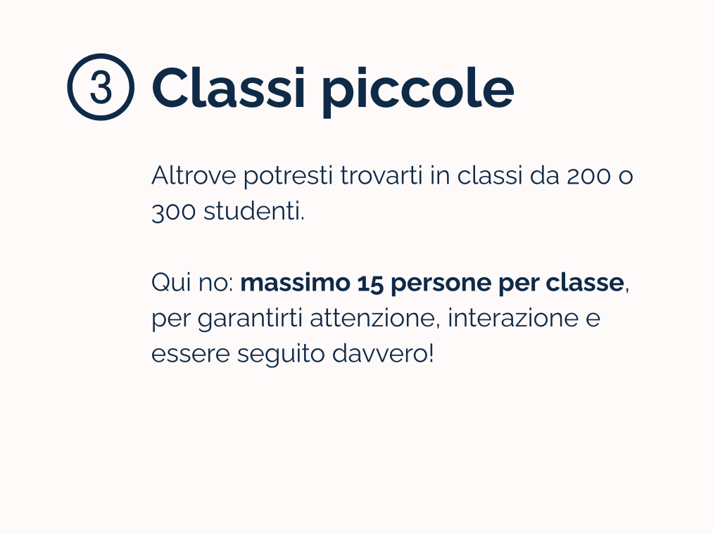 Verrà organizzata una lezione a settimana per mantenere costantemente monitorata la tua preparazione!