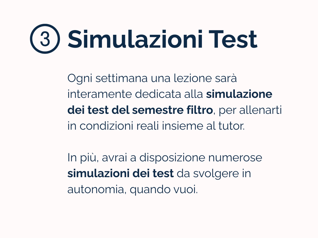 Le simulazioni d’esame corrispondono a due ore di lezione in cui riproduciamo le vere condizioni d’esame per testare la preparazione.