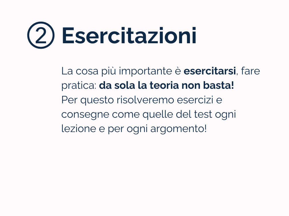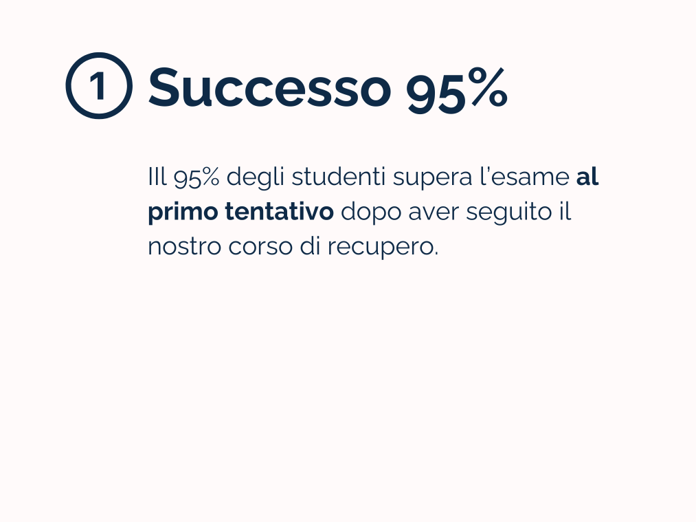 Questo corso ha come presupposto il recupero completo di tutta la teoria che ti serve per superare l’esame.