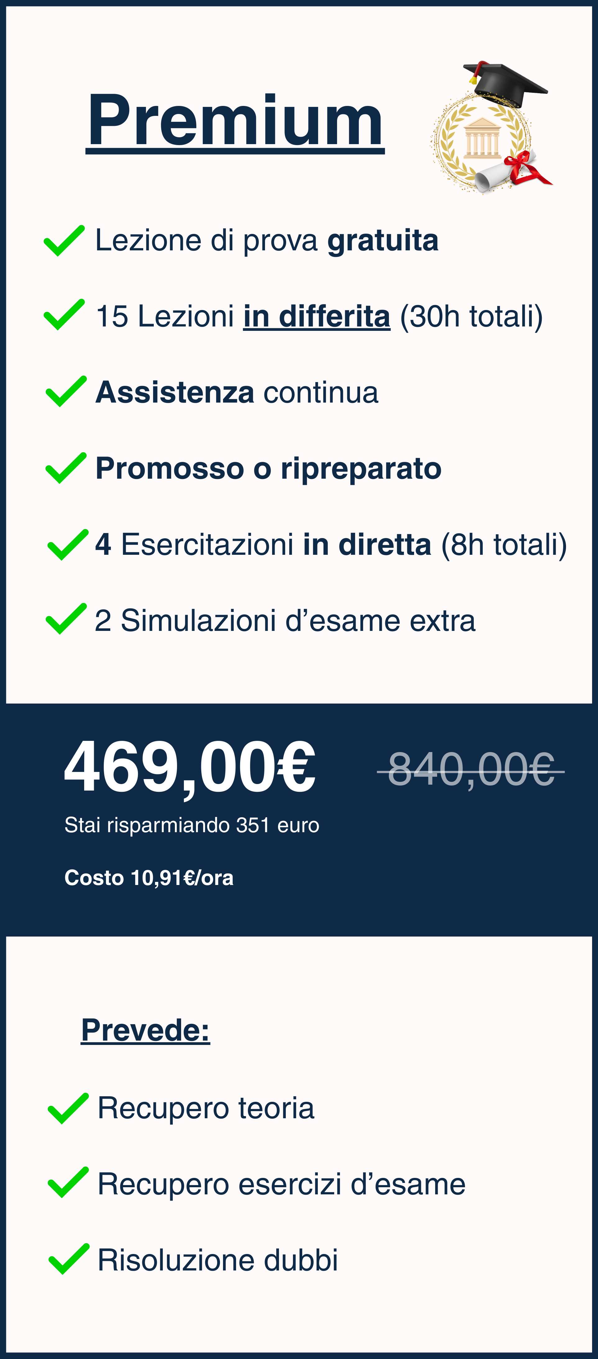 Questo corso ha come presupposto il recupero completo di tutta la teoria che ti serve per superare l’esame, qualunque sia il piano che hai scelto: Base, Standard o Premium.